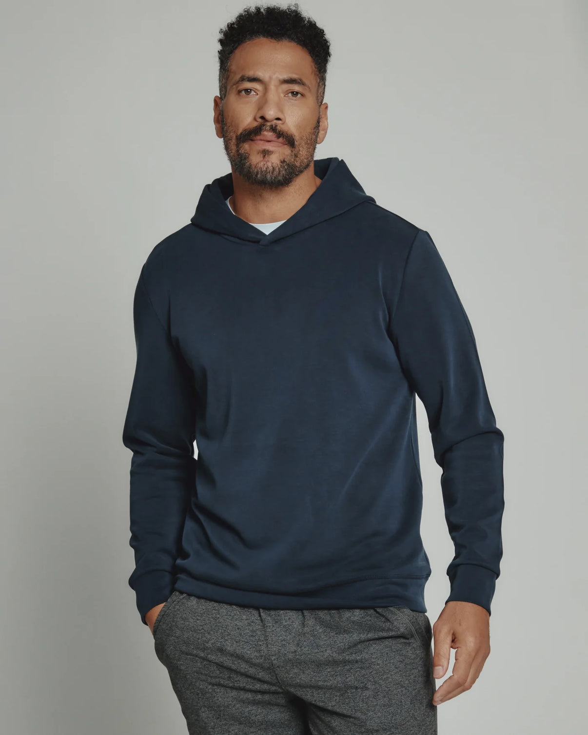 A contemporary relaxed hoodie that features barrel cuff and hem. Impossibly soft with the perfect amount of stretch and recovery. Wear by itself or under a jacket for a layered look.